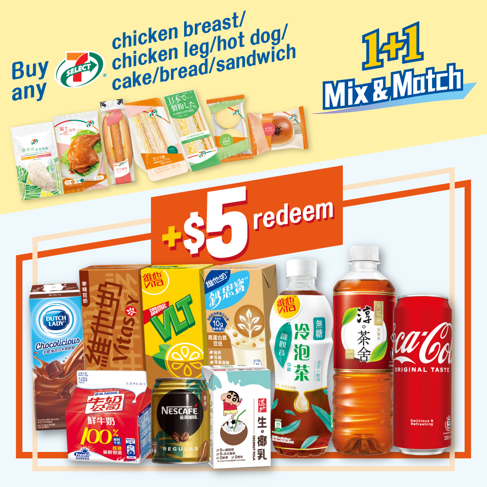 - Add $12 to enjoy a can/bottle/cup of Ashai Wonda Black Coffee 400ML / Red Bull Energy Drink 250ML range / 7-SELECTJuice / Fruit Tea / Hong Kong Style Milk Tea / 7CAFÉ Iced Coffee