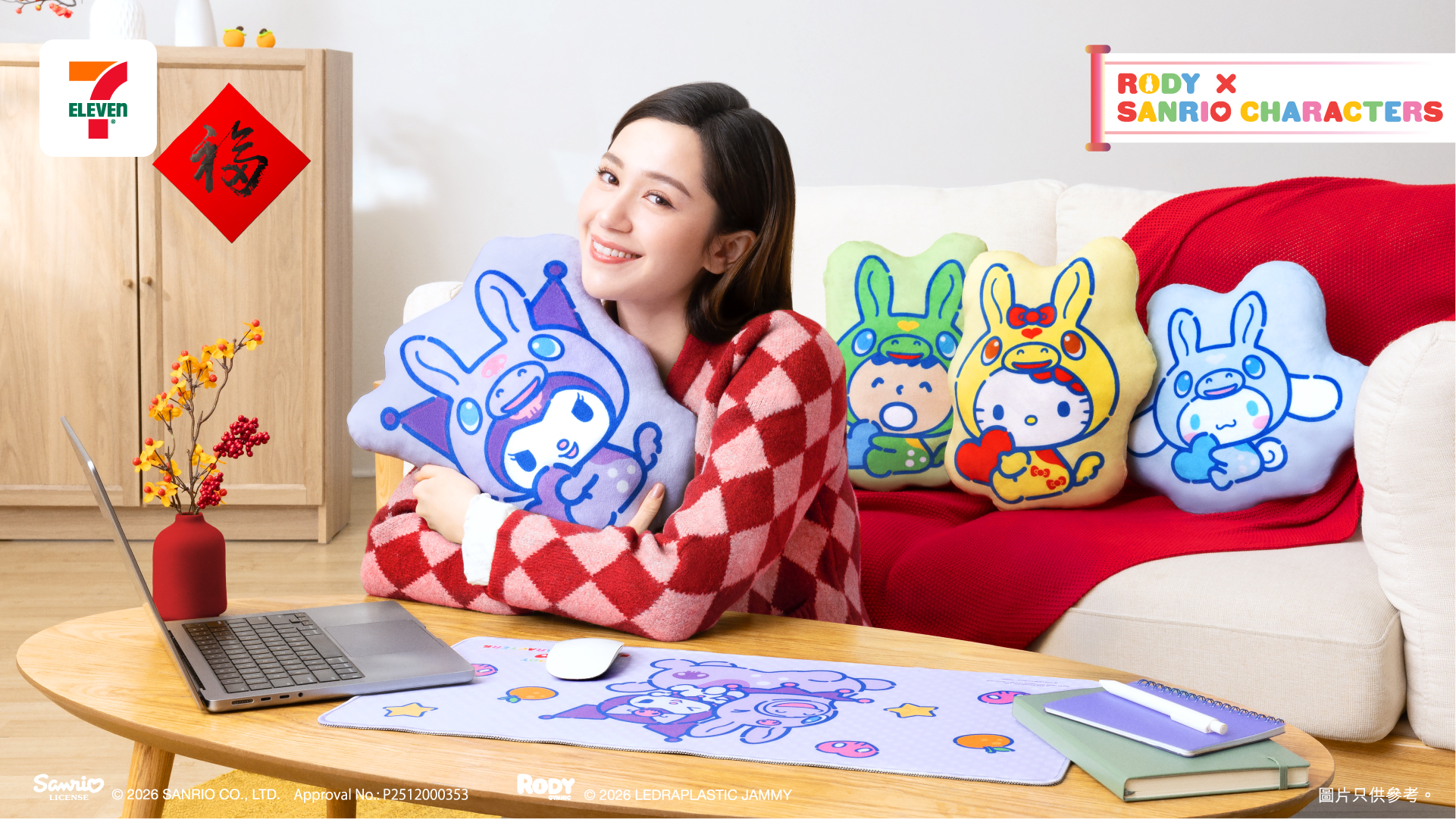 新年新氣象,居家擺設當然要添上新意,今次7-Eleven於產品設計上添上了更多新元素,6位 Sanrio characters 分別戴上顏色鮮豔的Rody 跳跳馬頭套可愛現身,款款設計都充滿賀年氣氛,非常適合作居家開運擺設。賀年公仔外型設計以「達摩不倒翁」為靈感,毛茸茸的觸感,抱著時柔軟舒服,公仔內置搖鈴,只需輕輕搖動就會發出「啷啷」聲,帶來滿滿治療感。其圓碌碌的超萌造型,象徵福氣滿滿,每款公仔皆印有其各自的祝福語包括:「大吉」、「結緣」、「開運」、「健康」、「常滿」及「必勝」,寓意大家新一年好運連連,將祝福傳遞給摯親!