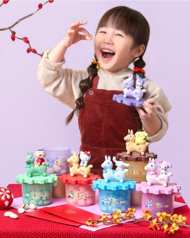 「轉轉好運收納盒」不僅是吸睛的擺設,更兼具收藏及實用等多重功能!收納盒的上半部份配備精緻可拆卸的3D公仔,單獨擺放在家或作為辦公室裝飾也十分吸引。齒輪造型的蓋子,扭開後是一個印有造型圖案及新年祝福語的印章,非常適合喜歡蓋印章的小朋友玩耍。集齊6款不同顏色的印章,更能拼湊出一個完整的圖案,趣味升級。收納盒蓋子的齒輪連接設計更是充滿驚喜,當集齊並連接多個收納盒的盒身掛勾,再轉動3D公仔時,則可令其他的公仔也會同步360度轉動,創造出獨特的互動新年小全盒。