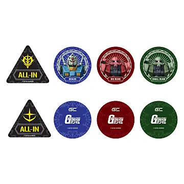套裝包含300片高品質籌碼與2副高達主題撲克牌。籌碼上印有6款高達及自護機體圖案,手感細膩;撲克牌以紅藍色為主調,牌面設計精緻,呈現經典角色、機體及名場面,讓遊戲更具視覺衝擊。