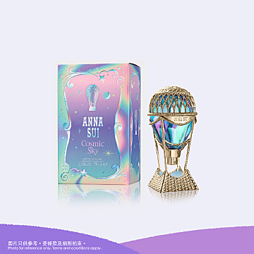 設計靈感來自華麗的復古熱氣球,Anna Sui 綺幻星空淡香水的香水瓶外殼,打造為精緻的香檳色金屬鍍銀籠子和搖籃。