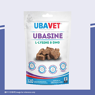 UBASINE 結合 離胺酸(每2粒250毫克) 和 DMG(每2粒45毫克),專為增強貓與幼貓免疫力設計,幫助: