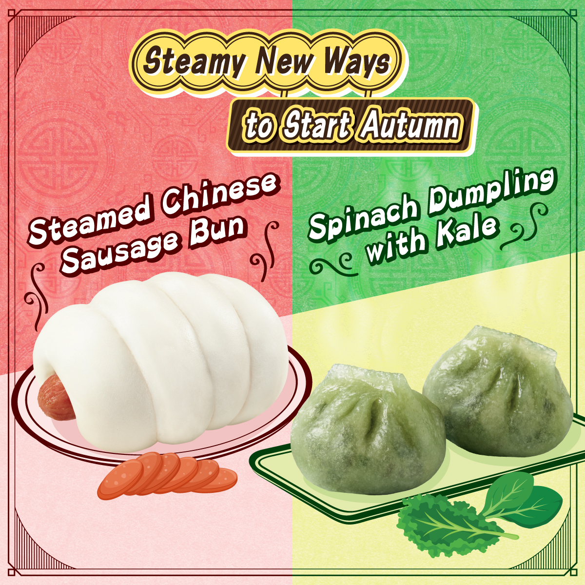 New, exciting additions have arrived on the “Tsat Jai Sik Dong” menu. Introducing the Steamed Chinese Sausage Bun and Spinach Dumpling with Kale. Available at selected stores only.