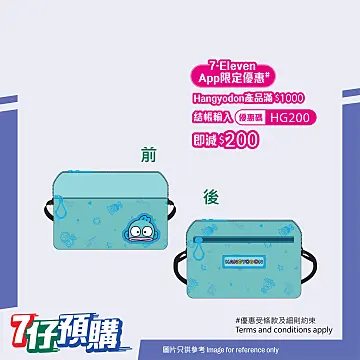 推廣期內*購買任何Hangyodon產品滿$1,000於付款前輸入優惠碼「HG200」並於7-Eleven 應用程式完成下單,即可享$200折扣優惠。優惠受條款及細則約束,詳情請參閱7-Eleven 應用程式。