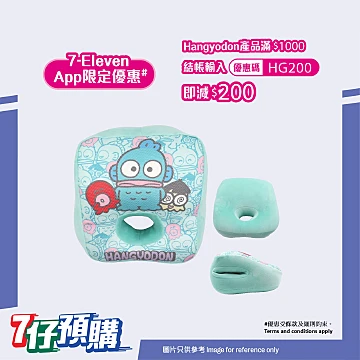 推廣期內*購買任何Hangyodon產品滿$1,000於付款前輸入優惠碼「HG200」並於7-Eleven 應用程式完成下單,即可享$200折扣優惠。優惠受條款及細則約束,詳情請參閱7-Eleven 應用程式。