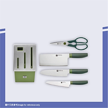 (中式廚刀 7",日式廚刀 7",多用途刀 5.5",可拆除廚房剪 8",自磨刀座)