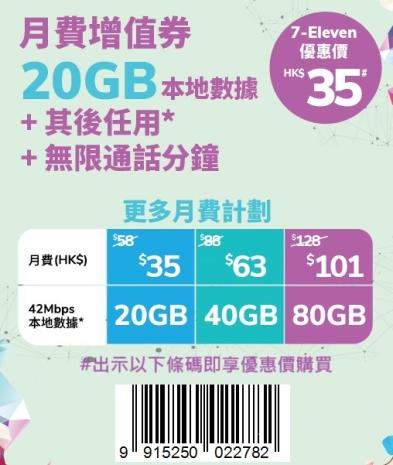 本地數據: 一個月20GB + 無限數據*