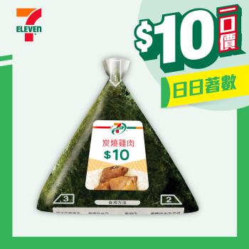 $10一口價 於任何一間分店,只要見到「$10」標示,就代表產品以超抵價$10發售。不論是「日日著數」7-Eleven自家品牌食品,或「限時加推」精選產品,全部都是一口價 $10 ﹗ 7-SELECT特長孜然香腸 7-SELECT 炭燒雞肉飯糰(只限香港)