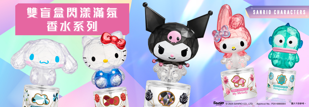 7-Eleven再次「踩過界」!破天荒與8位Sanrio人氣角色聯乘,誠意打造全新「閃漾滿氛香水套裝」系列,並首度跨界聯乘本地香氛品牌BeCandle締造驚喜。BeCandle 以高品質見稱,香氣層次細膩,每款香水均由香港製造,更加入香水層疊的樂趣,透過自由混搭香味,創造專屬於你的個人香氣與節日氣息。全套系列一共有9款Sanrio角色3D造型香水樽及9款BeCandle 30毫升香水,其中香水樽及香水分別各包含隱藏版1款,破天荒以雙盲盒形式換購,一次可換購2個,分別載有3D造型香水樽盲盒1個及BeCandle香水盲盒1個,帶來雙倍開盲盒驚喜之刺激快感!而你可以在集齊喜愛的Sanrio 角色3D造型香水樽和香水後,再以套裝內的漏斗自行注入香水樽內,製作岀最理想的香水組合,無論送禮還是自用都心思滿分,展現到獨一無二的個性魅力!