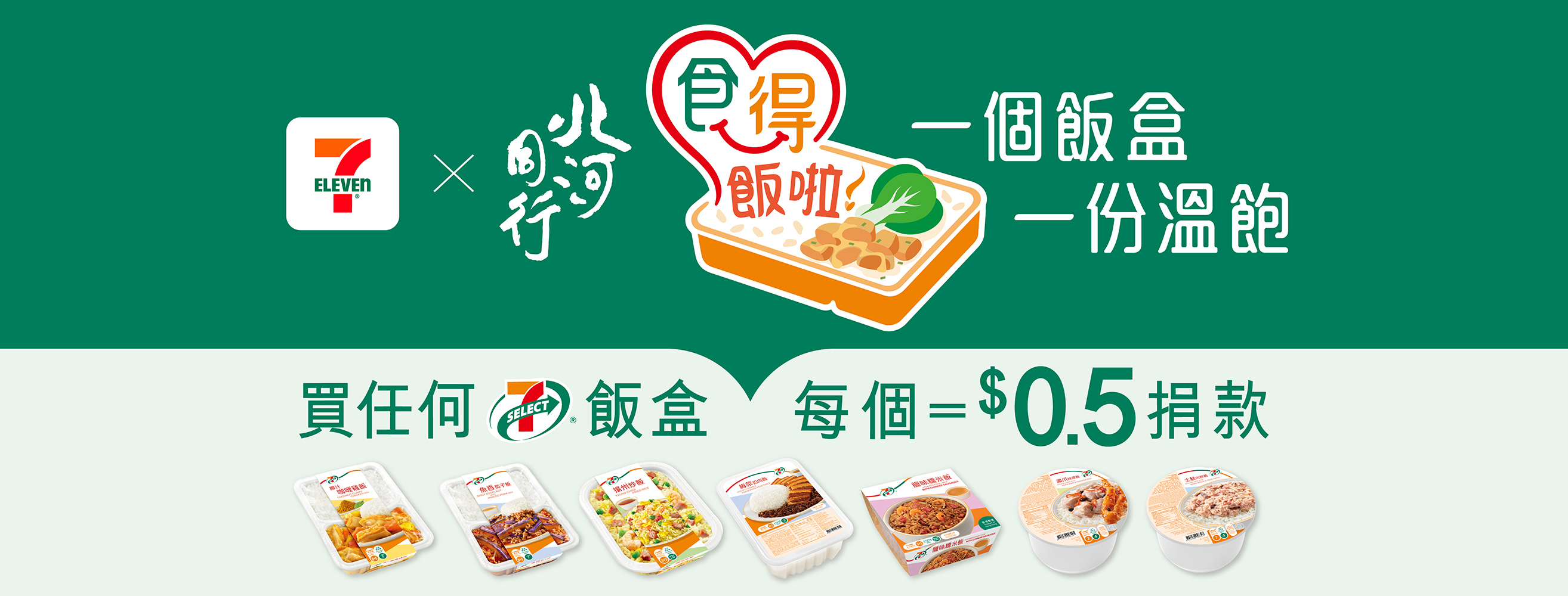 透過「食得飯啦!」互助行動,顧客每購買一盒 7-SELECT 飯盒,7- Eleven 即捐出 0.5 港元予「北河同行」,協助「北河同行」派飯活動。每月的第 11 日為「加倍日」,顧客購買指定飯盒時,7- Eleven便會將捐款加倍至 1 港元。 「食得飯啦!」互助行動善用 7-Eleven 廣泛的店舖網絡,為捐贈者與受助人士搭建橋樑,讓社會各界人士均能參與其中,匯聚公眾力量,共同為北河同行提供可持續的支援,惠及更多有需要人士。 7- Eleven希望藉著「食得飯啦!」互助行動,能服務深水埗及其他地區需要幫助的人士,實踐「取之於社會、用之於社會」的企業責任。