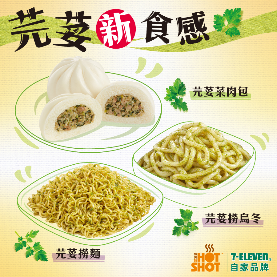 芫荽新食感 芫荽菜肉包 套餐任何(紅點)小食可轉配芫荽菜肉包2件 芫荽撈烏冬/撈麵 圖片只供參考。所有價格以個別店舖為準。貨品數量有限,售完即止。如有爭議,7-Eleven將保留最終之決定權。 尋找店舖 其他熱賣點推介
