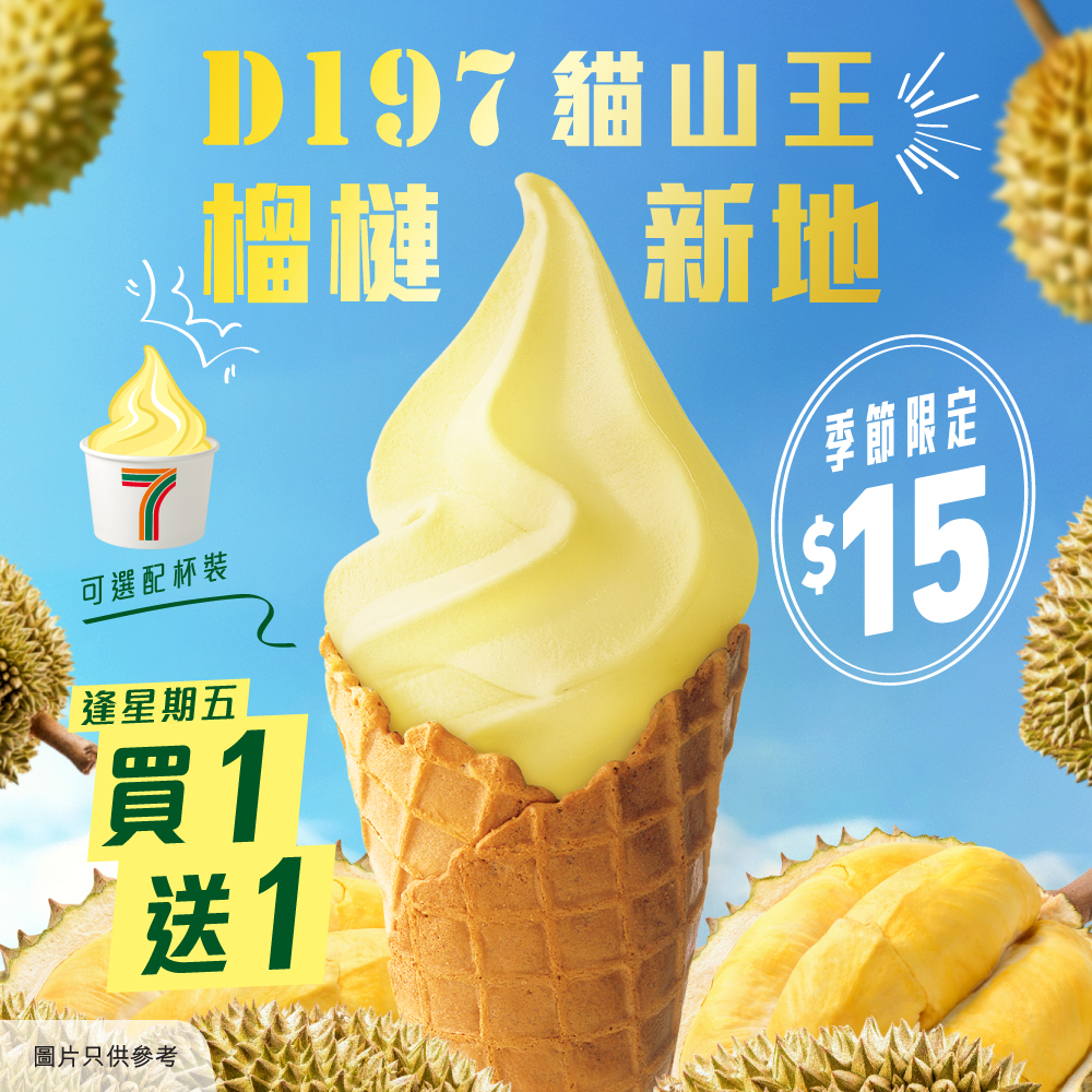 新地 軟滑新地配上香脆甜筒,啖啖豐富口感。不定期推出限定新口味,為大家帶來味覺新驚喜。 D197貓山王榴槤新地 以馬來西亞D197貓山王榴槤製成,升級配方令榴槤味更加濃郁,搭配冰凍新地幼滑口感,啖啖雙重震撼 圖片只供參考。以上優惠只適用於部分店舖。所有價格以個別店舖為準。貨品數量有限,售完即止。如有爭議,7-Eleven將保留最終之決定權。 尋找店舖